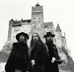 Kadavar is also known for self-recording their albums with "hard panning" production techniques (guitar tracks on the left channel, bass on the right, drums on the inside right and vocals in the middle) to accurately reproduce the sound of their live performances.[1] Their style has been categorized to have a "riffed psych rock and doom like sound" with influences from Black Sabbath, The Doors, Hawkwind, and Led Zeppelin.[2][3]
