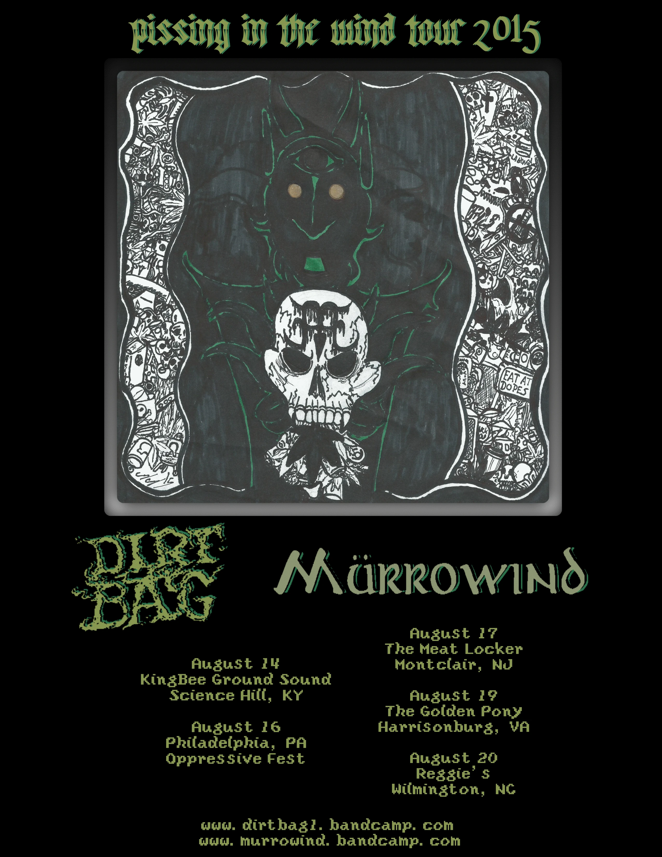 Pissing In The Wind was a tour between Lexington, Kentucky sludge/doom band Dirtbag and Harrodsburg, Kentucky death/grind band Murrowind, held for five dates in the summer of 2015 with three dates preceding.